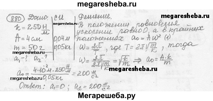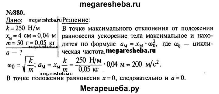 Подробный решебник (ГДЗ) по Физике за 7‐9 (седьмой‐девятый) класс сборник задач - готовый ответ номер - 880. Авторы учебника: Лукашик, Иванова. Издательство: Просвещение 2016.