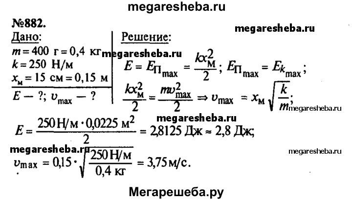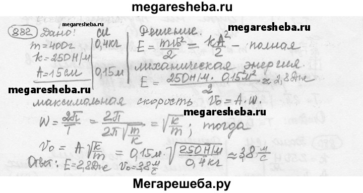 Подробный решебник (ГДЗ) по Физике за 7‐9 (седьмой‐девятый) класс сборник задач - готовый ответ номер - 882. Авторы учебника: Лукашик, Иванова. Издательство: Просвещение 2016.