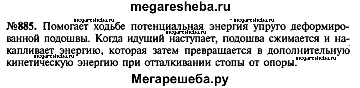 885. Почему легче идти в обуви на толстой упругой подошве при определенной частоте шагов? Объясните с точки зрения превращения энергии.