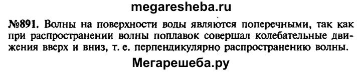 891. Чтобы выяснить, являются ли волны на поверхности воды продольными или поперечными, мальчик бросал в пруд камешки и наблюдал за колебаниями рыболовного поплавка. К какому выводу пришел мальчик?