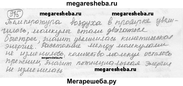 915. Закрытую пробирку погрузили в горячую воду. Изменилась ли кинетическая и потенциальная энергия молекул воздуха в пробирке? Если изменилась, то как?