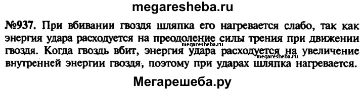 937. Почему при вбивании гвоздя его шляпка нагревается слабо, а когда гвоздь уже вбит, то достаточно нескольких ударов, чтобы сильно нагреть шляпку?