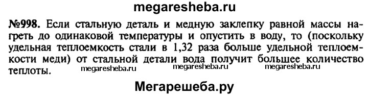 Подробный решебник (ГДЗ) по Физике за 7‐9 (седьмой‐девятый) класс сборник задач - готовый ответ номер - 998. Авторы учебника: Лукашик, Иванова. Издательство: Просвещение 2016.