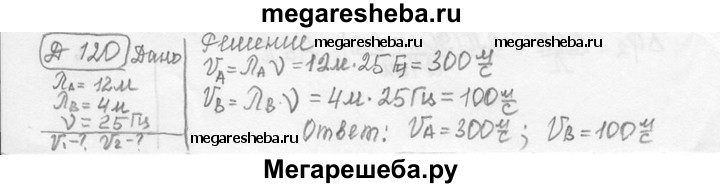 Д. 120. Ознакомьтесь с условием задачи 896° и определите скорости распространения волн в каждой из сред, если частота колебаний источника волн равна 25 Гц.
