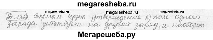 Д. 136. Два электрических заряда взаимодействуют с некоторой силой. Какое из утверждений верно: 1) один заряд действует на другой заряд; 2) поле одного заряда действует на другой заряд, и наоборот; 3) поле одного заряда действует на поле другого заряда?