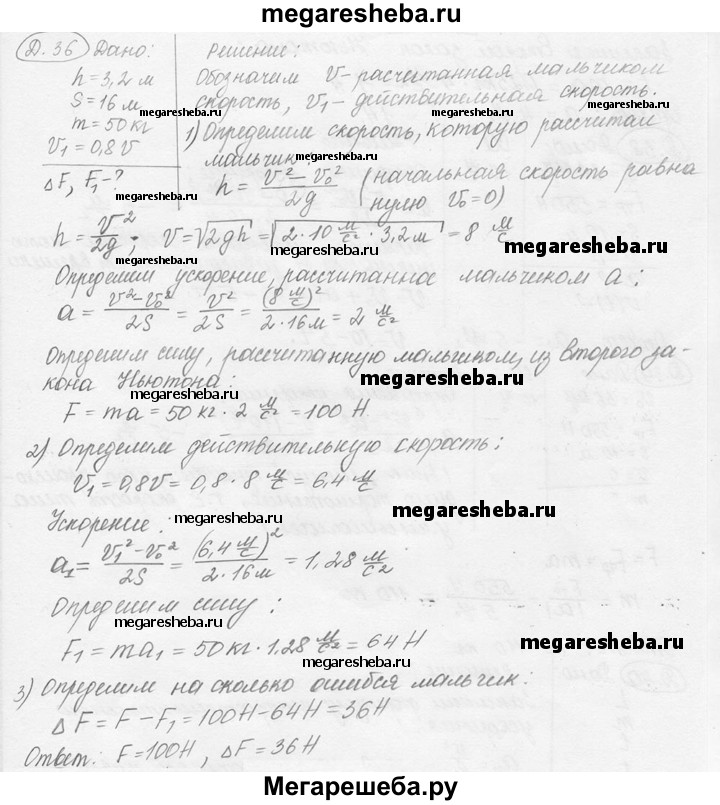 ГДЗ по физике 7‐9 класс Лукашик сборник задач дополнительная задача - 36
