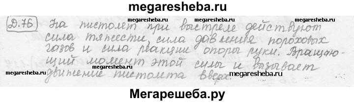 Д. 76. При выстреле в горизонтальном направлении пистолет приобретает импульс, противоположный по направлению импульсу пули. Почему же тогда пистолет подпрыгивает вверх?