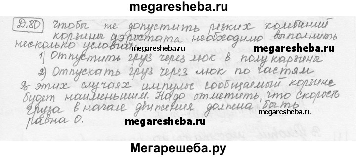 Д. 80. Чтобы аэростат, неподвижно висящий над землей, стал подниматься вверх, надо выбросить из корзины часть балластного груза. Каким наилучшим образом надо это сделать, чтобы не вызвать резких колебаний корзины аэростата? Рассмотрите несколько вариантов: 1) выбросить груз через борт или через люк в полу корзины; 2) отпустить груз или сообщить ему начальную скорость в каком-либо направлении; 3) избавиться от груза по частям или целиком.