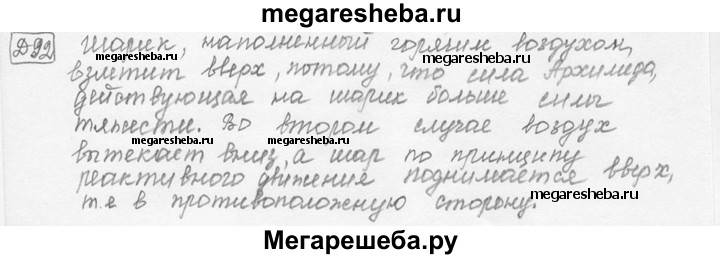 Д. 92. Если перестать удерживать воздушный шарик из легкого материала, наполненный горячим воздухом, то он взлетит вверх. Аналогично поведет себя в начальный момент надутый, не завязанный веревочкой резиновый шарик, если вы, держа его отверстием вниз, разожмете пальцы. Какие причины вызывают движение шарика вверх в первом и во втором случае?