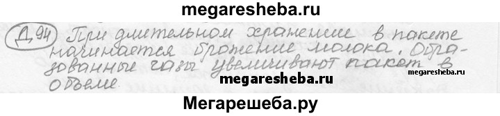 Д. 94. В плотно закрытом полиэтиленовом пакете с молоком, хранящемся при постоянной температуре, масса вещества остается неизменной. Почему со временем пакет увеличивается в объеме?