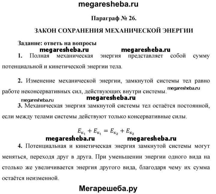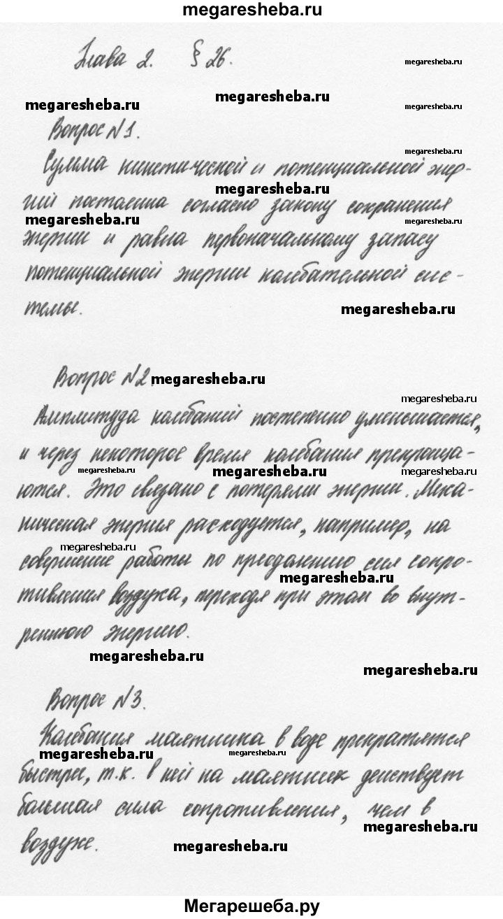 ГДЗ по физике 9 класс Перышкин Базовый уровень вопросы - §26