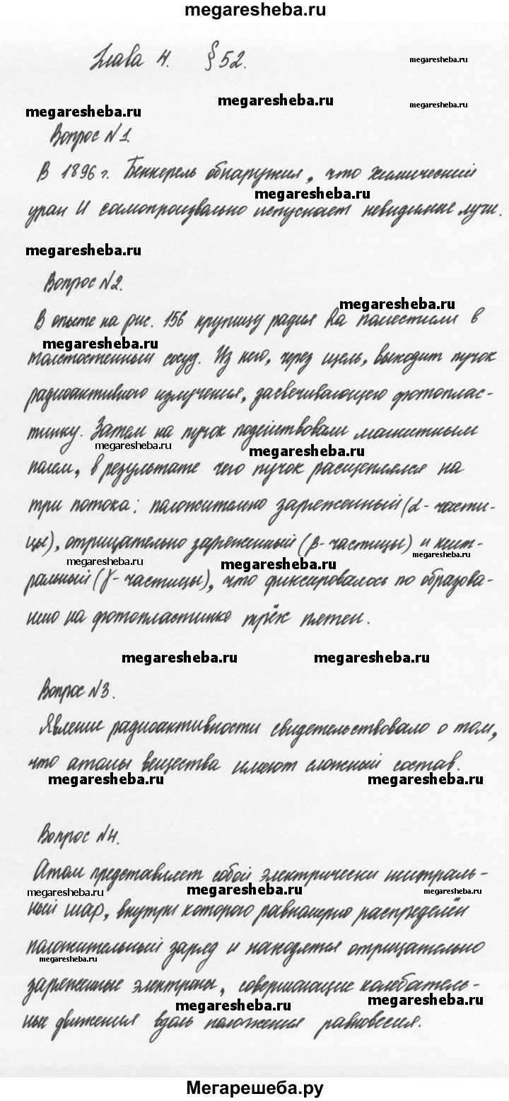 ГДЗ по физике 9 класс Перышкин Базовый уровень вопросы - §52