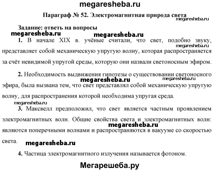 Подробный решебник (ГДЗ) по Физике за 9 (девятый) класс - готовый ответ вопросы - §52. Авторы учебника: Перышкин, Гутник, Иванов, Петрова, Базовый уровень. Издательство: Дрофа 2014-2024.