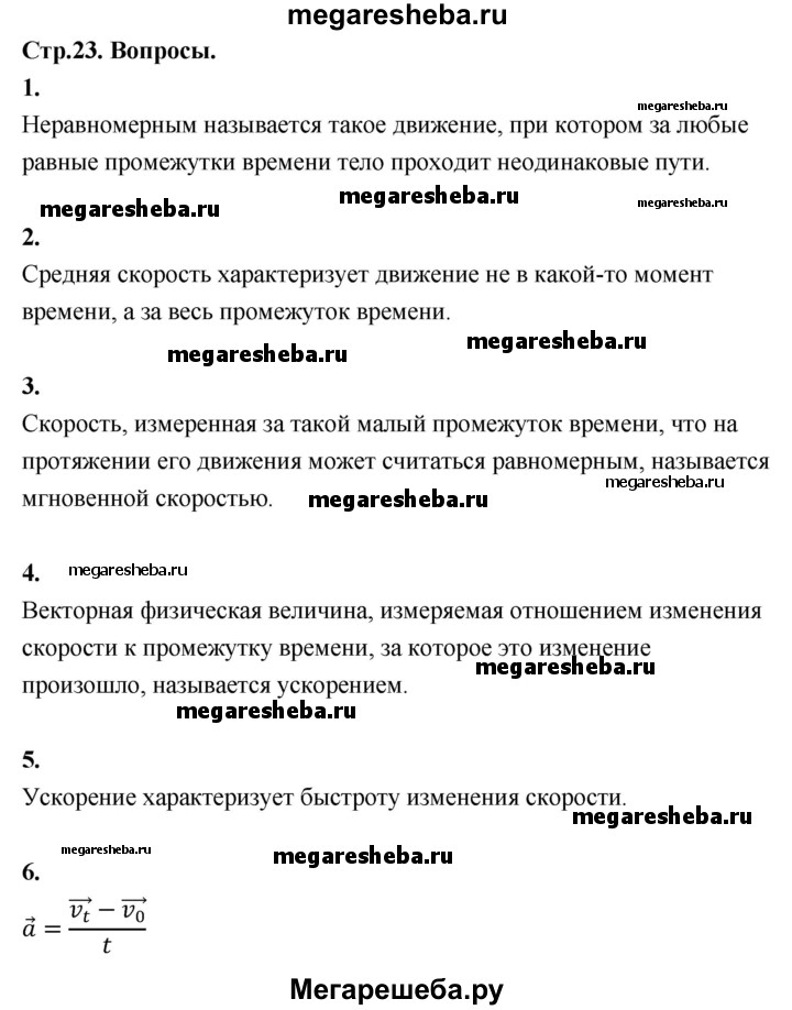 ГДЗ по физике 9 класс Перышкин Базовый уровень вопросы - §6
