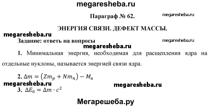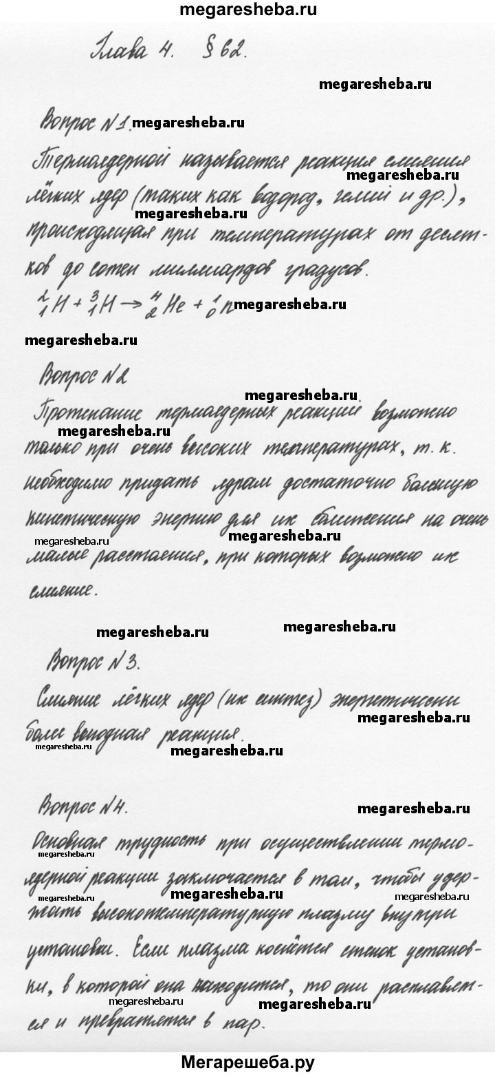 ГДЗ по физике 9 класс Перышкин Базовый уровень вопросы - §62