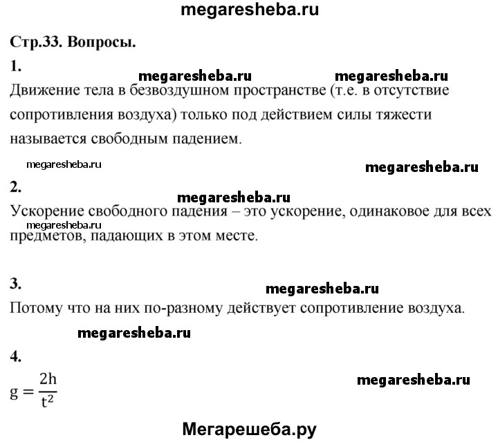 ГДЗ по физике 9 класс Перышкин Базовый уровень вопросы - §9
