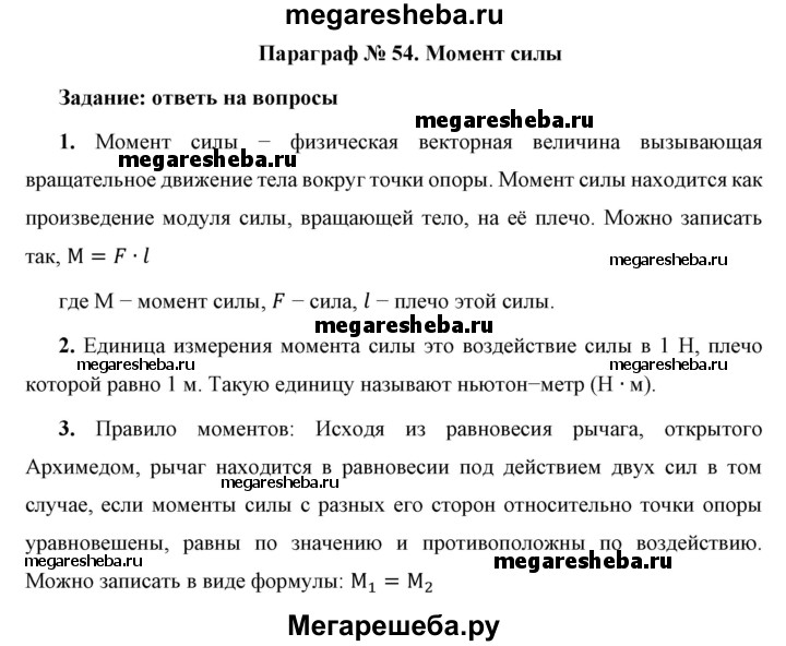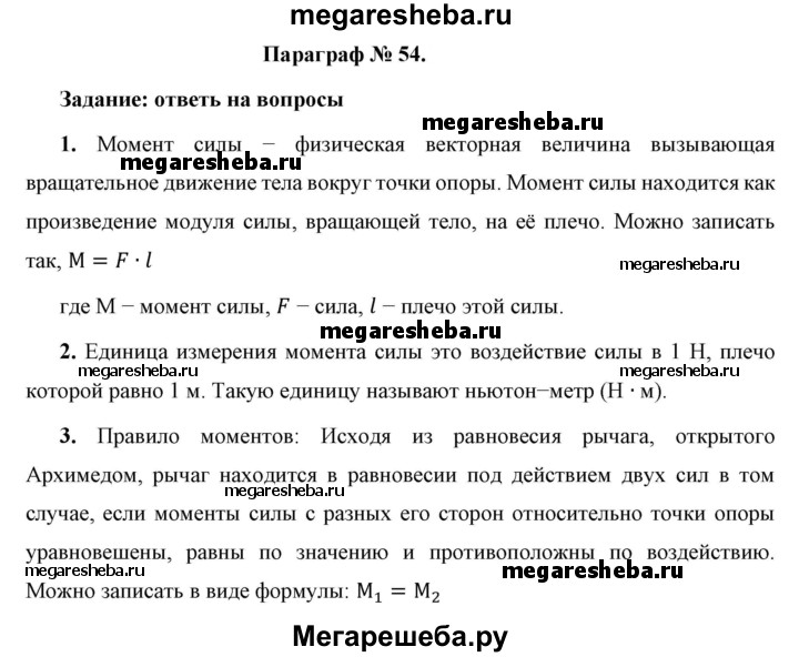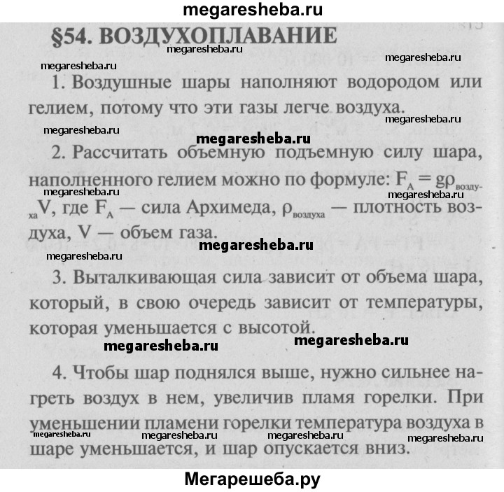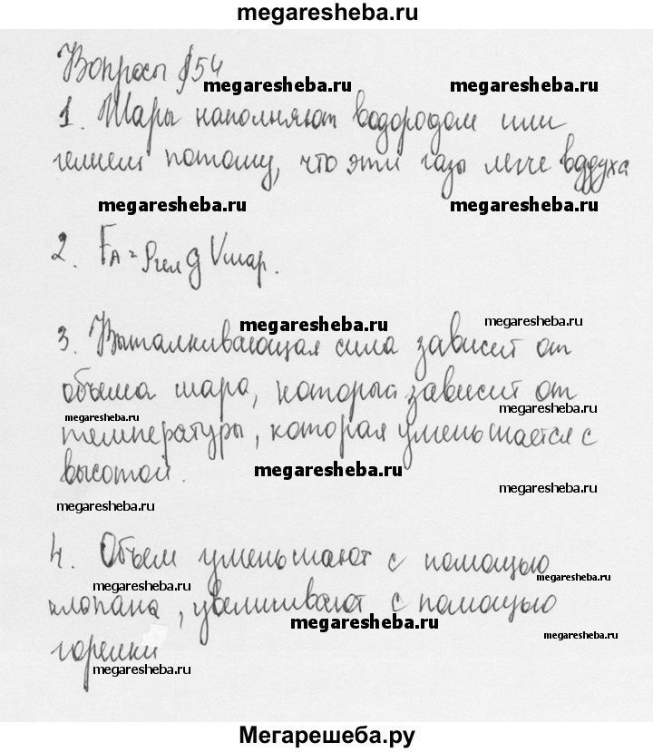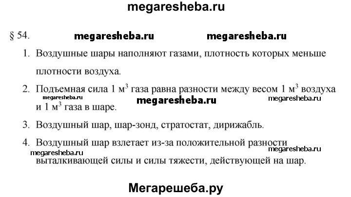 ГДЗ по физике 7 класс Перышкин Базовый уровень вопросы - §54
