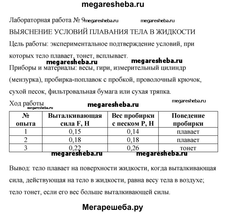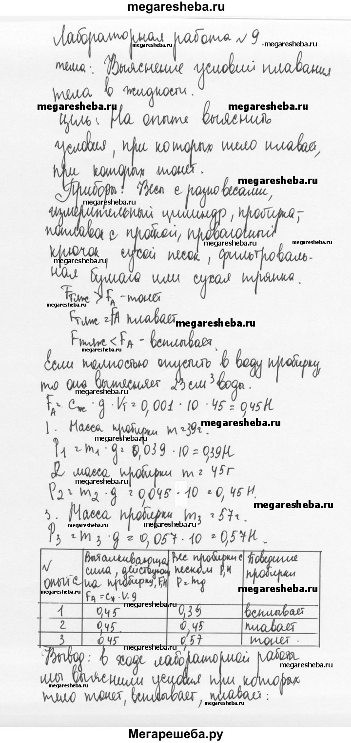 ГДЗ по физике 7 класс Перышкин Базовый уровень лабораторная работа - 9