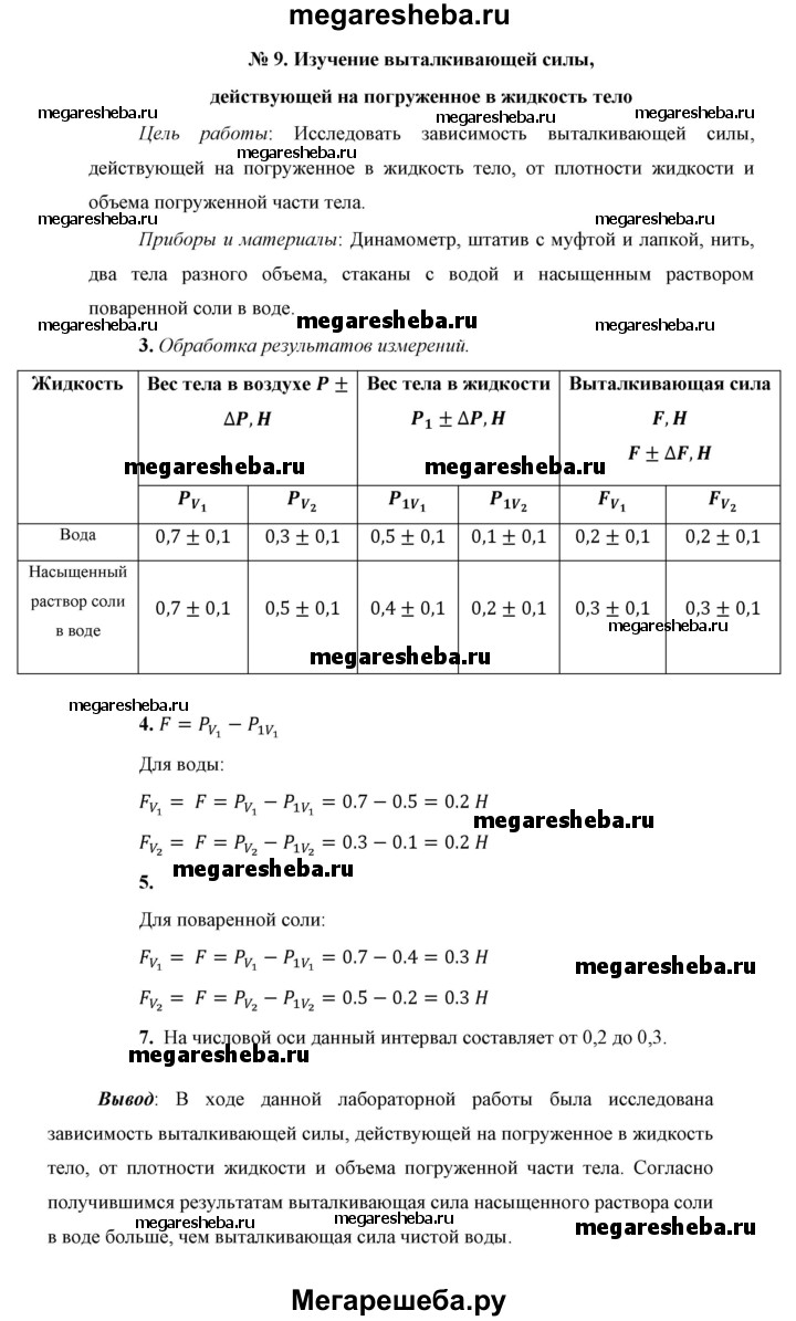 Подробный решебник (ГДЗ) по Физике за 7 (седьмой) класс - готовый ответ лабораторная работа - 9. Авторы учебника: Перышкин, Иванов, Базовый уровень. Издательство: Дрофа 2016-2023.