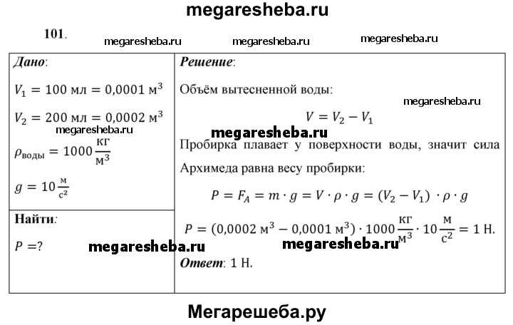 Подробный решебник (ГДЗ) по Физике за 7 (седьмой) класс - готовый ответ задача - 101. Авторы учебника: Перышкин, Иванов, Базовый уровень. Издательство: Дрофа 2016-2023.