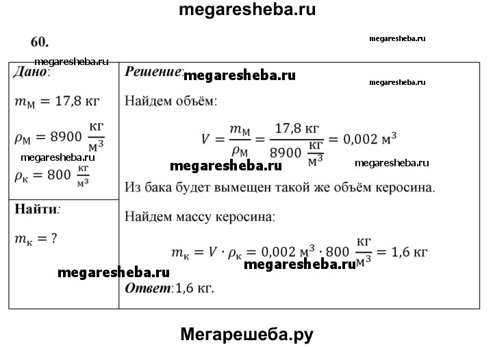 Подробный решебник (ГДЗ) по Физике за 7 (седьмой) класс - готовый ответ задача - 60. Авторы учебника: Перышкин, Иванов, Базовый уровень. Издательство: Дрофа 2016-2023.
