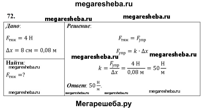 Подробный решебник (ГДЗ) по Физике за 7 (седьмой) класс - готовый ответ задача - 72. Авторы учебника: Перышкин, Иванов, Базовый уровень. Издательство: Дрофа 2016-2023.