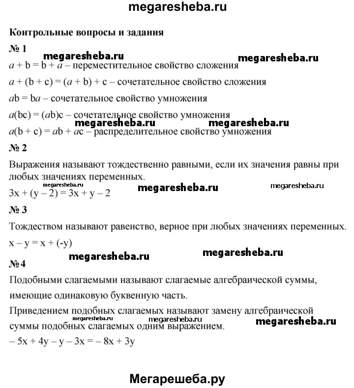 ГДЗ по алгебре 7 класс Макарычев вопросы и задания - 2