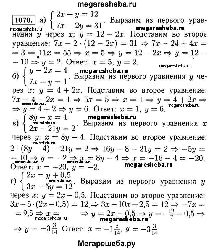 ГДЗ по алгебре 7 класс Макарычев номер - 1070