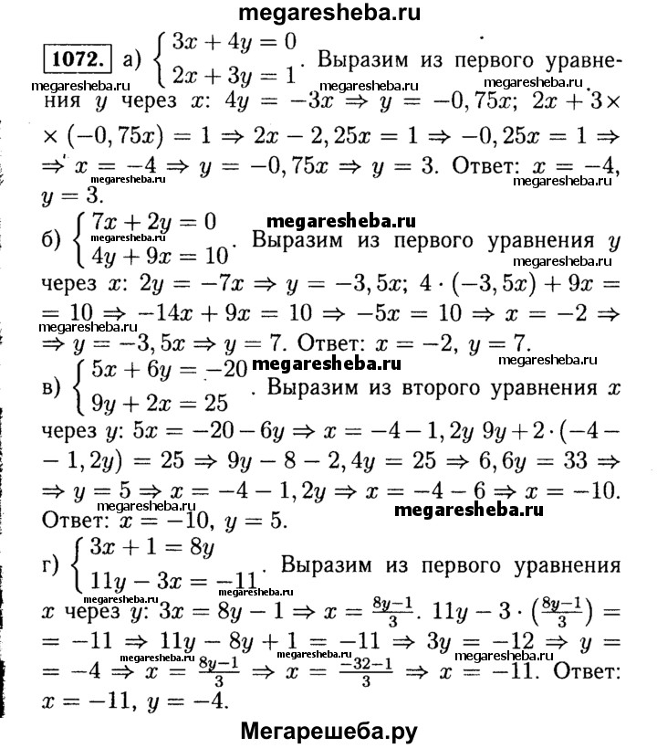 ГДЗ по алгебре 7 класс Макарычев номер - 1072