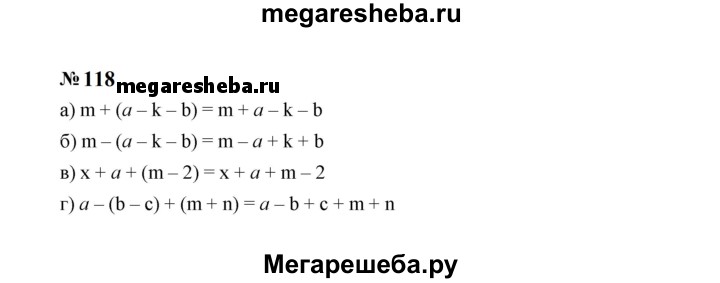 Подробный решебник (ГДЗ) по Алгебре за 7 (седьмой) класс - готовый ответ номер - 118. Авторы учебника: Макарычев, Миндюк, Нешков, Суворова. Издательство: Просвещение 2015-2024.
