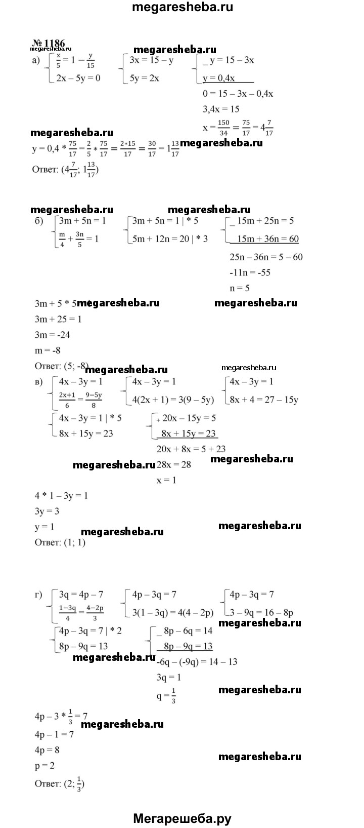 ГДЗ по алгебре 7 класс Макарычев номер - 1186