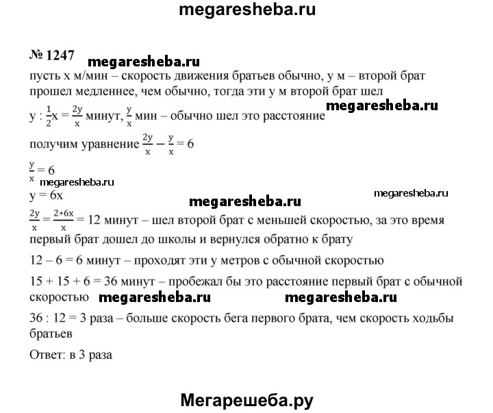 Подробный решебник (ГДЗ) по Алгебре за 7 (седьмой) класс - готовый ответ номер - 1247. Авторы учебника: Макарычев, Миндюк, Нешков, Суворова. Издательство: Просвещение 2015-2024.