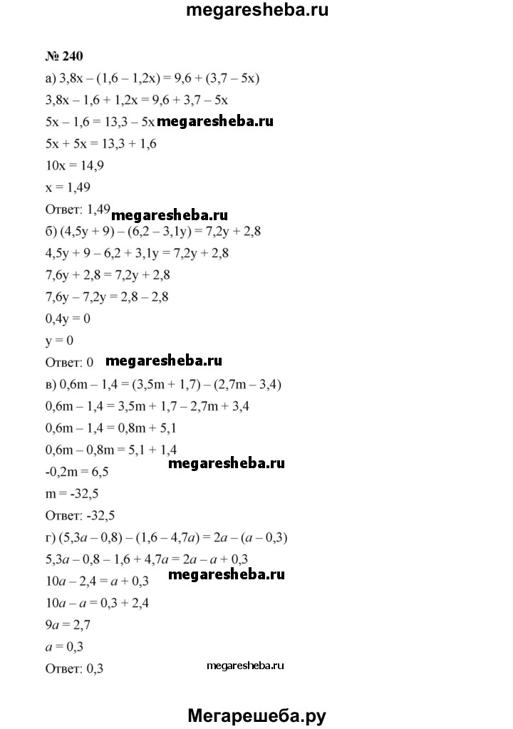 ГДЗ по алгебре 7 класс Макарычев номер - 240