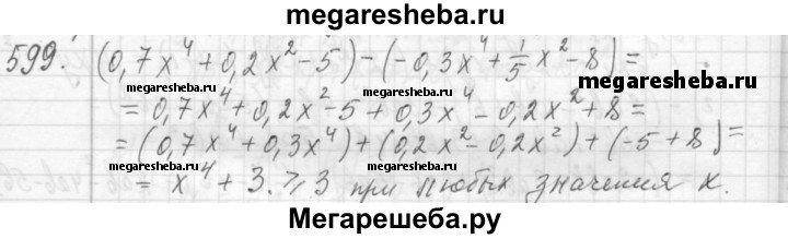 Подробный решебник (ГДЗ) по Алгебре за 7 (седьмой) класс - готовый ответ номер - 599. Авторы учебника: Макарычев, Миндюк, Нешков, Суворова. Издательство: Просвещение 2015-2024.