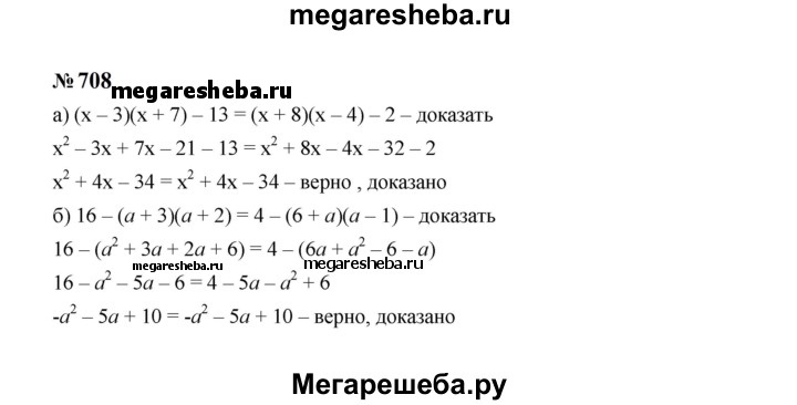 ГДЗ по алгебре 7 класс Макарычев номер - 708