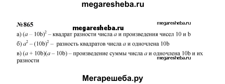 Подробный решебник (ГДЗ) по Алгебре за 7 (седьмой) класс - готовый ответ номер - 865. Авторы учебника: Макарычев, Миндюк, Нешков, Суворова. Издательство: Просвещение 2015-2024.