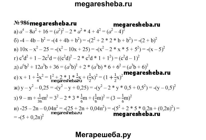 ГДЗ по алгебре 7 класс Макарычев номер - 986