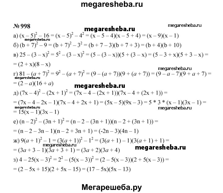 ГДЗ по алгебре 7 класс Макарычев номер - 998