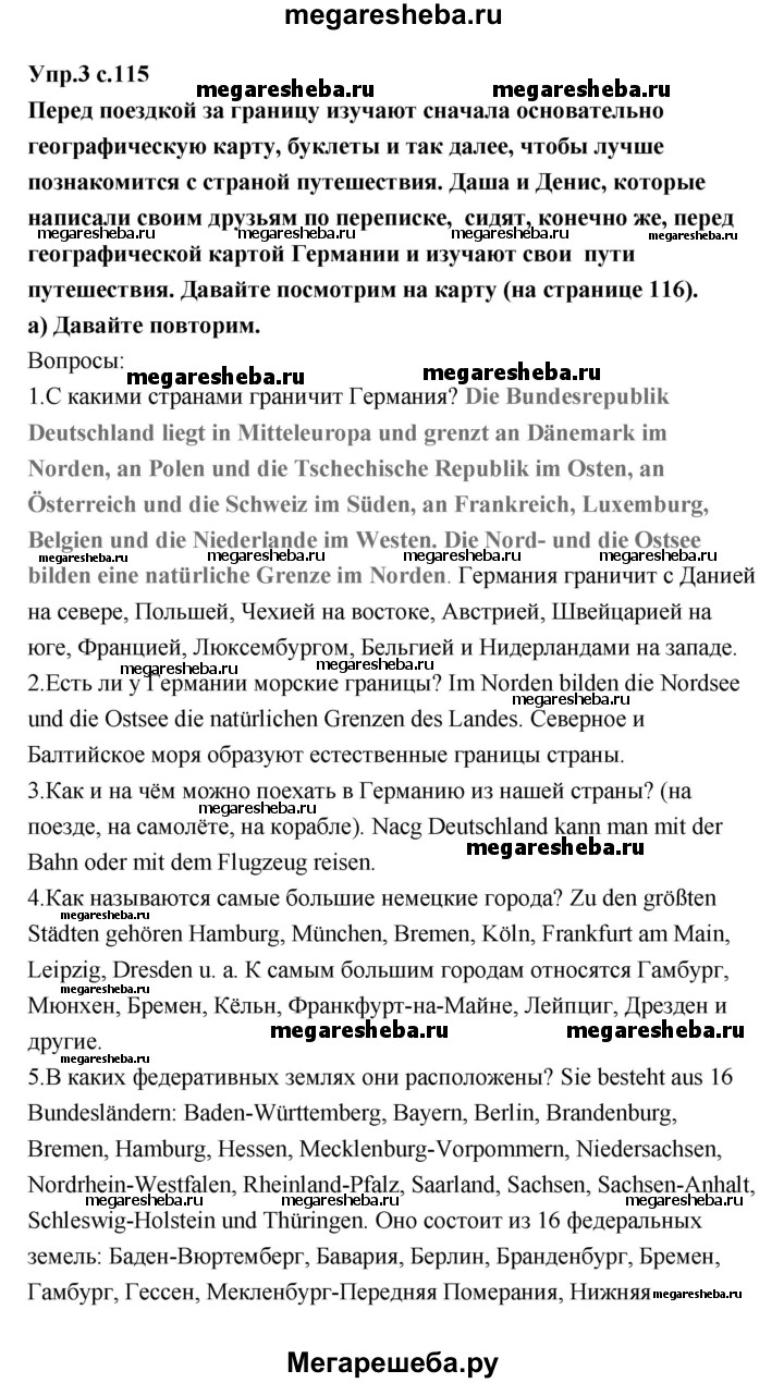 Подробный решебник (ГДЗ) по Немецкому языку за 8 (восьмой) класс - готовый ответ страница - 115. Авторы учебника: Бим, Садомова, Крылова, Санникова, Картова, Чернявская. Издательство: Просвещение 2014-2023.