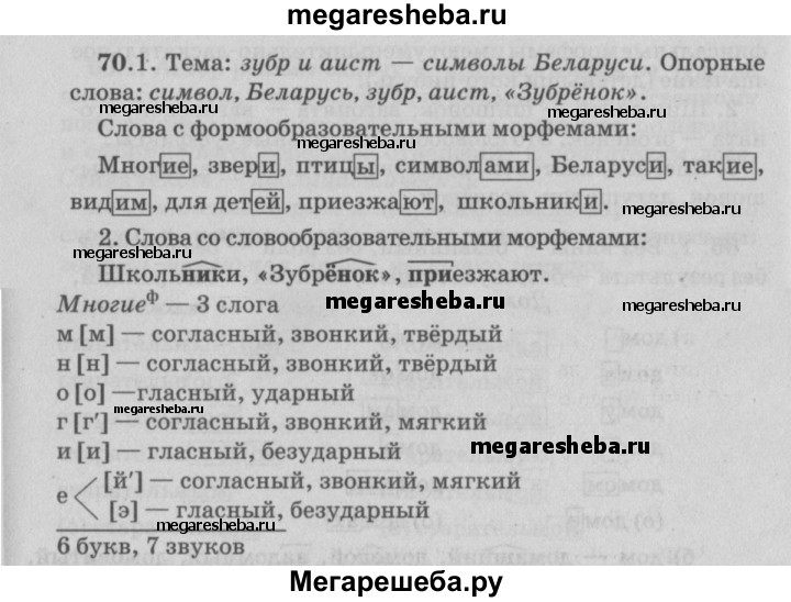 Подробный решебник (ГДЗ) по Русскому языку за 6 (шестой) класс - готовый ответ упражнение - 70. Авторы учебника: Мурина, Игнатович, Жадейко, Литвинко, Николаенко. Издательство: Национальный институт образования 2020, 2015.