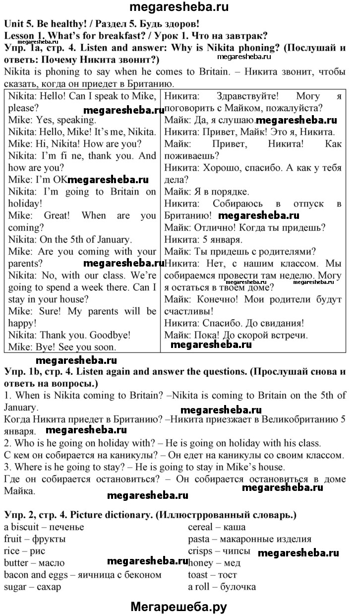 Подробный решебник (ГДЗ) по Английскому языку за 5 (пятый) класс - готовый ответ часть 2. страница - 4. Авторы учебника: Лапицкая, Севрюкова, Калишевич. Издательство: Народная асвета 2020.