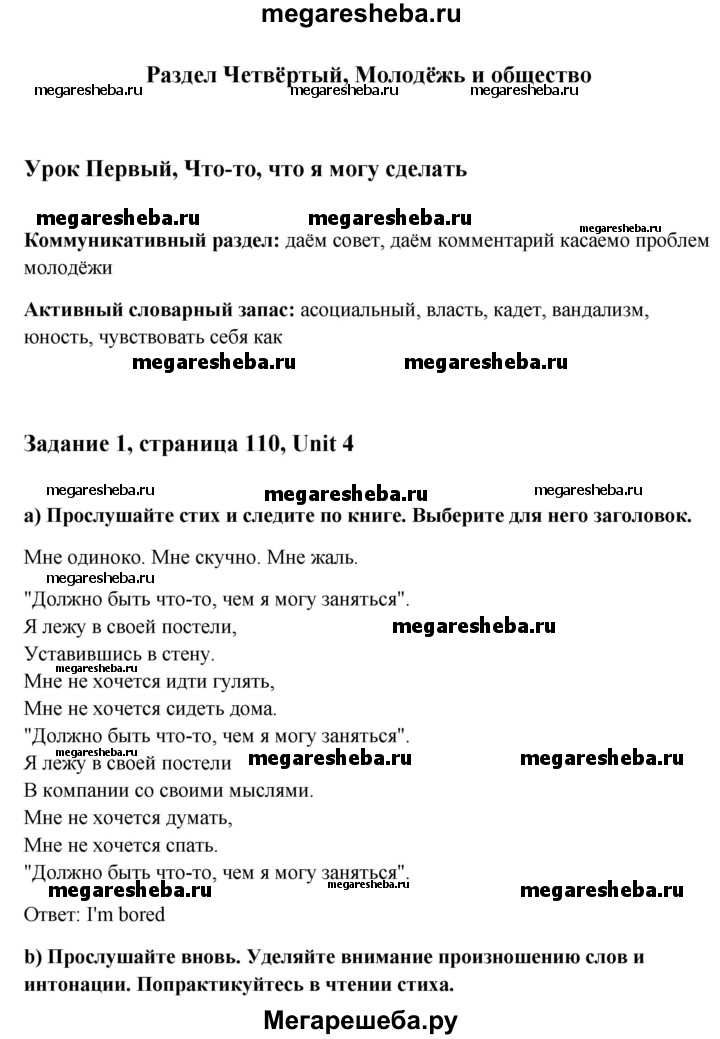 ГДЗ по английскому языку 10 класс Юхнель student's book решение к разделу: страница - 110