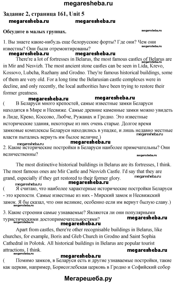 Подробный решебник (ГДЗ) по Английскому языку за 10 (десятый) класс student's book - готовый ответ решение к разделу: страница - 161. Авторы учебника: Юхнель, Наумова, Демченко. Издательство: Высшая школа 2019.