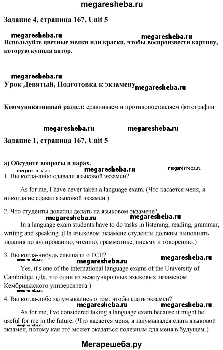 ГДЗ по английскому языку 10 класс Юхнель student's book решение к разделу: страница - 167