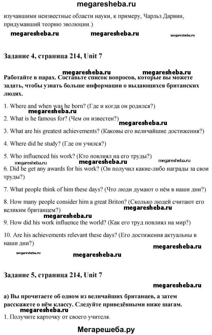 ГДЗ по английскому языку 10 класс Юхнель student's book решение к разделу: страница - 214