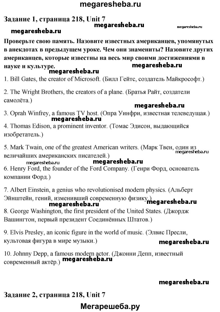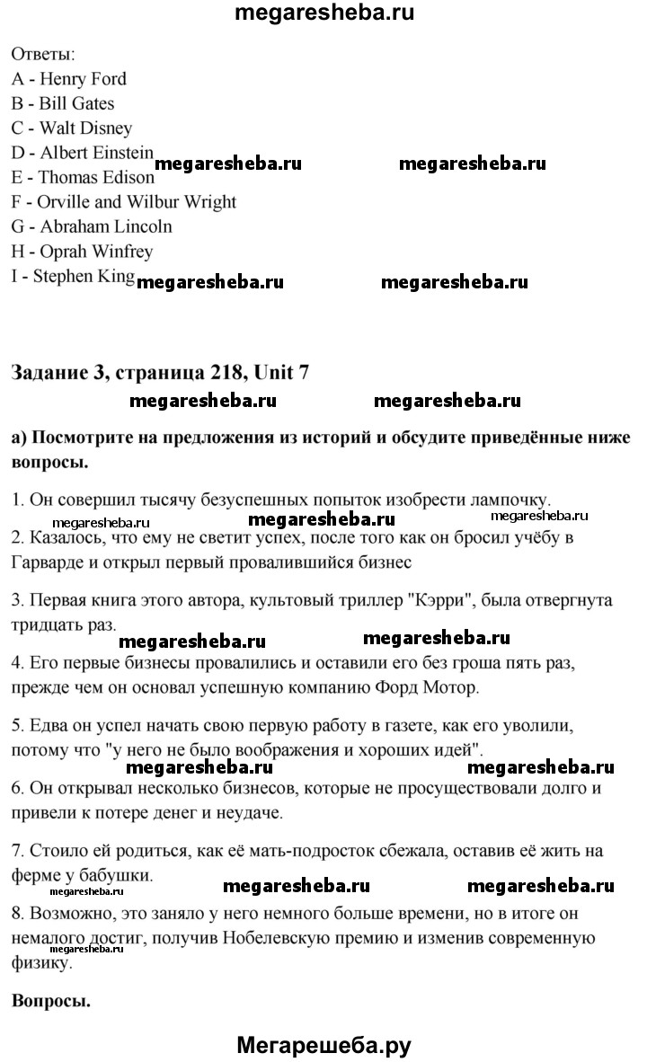 ГДЗ по английскому языку 10 класс Юхнель student's book решение к разделу: страница - 218