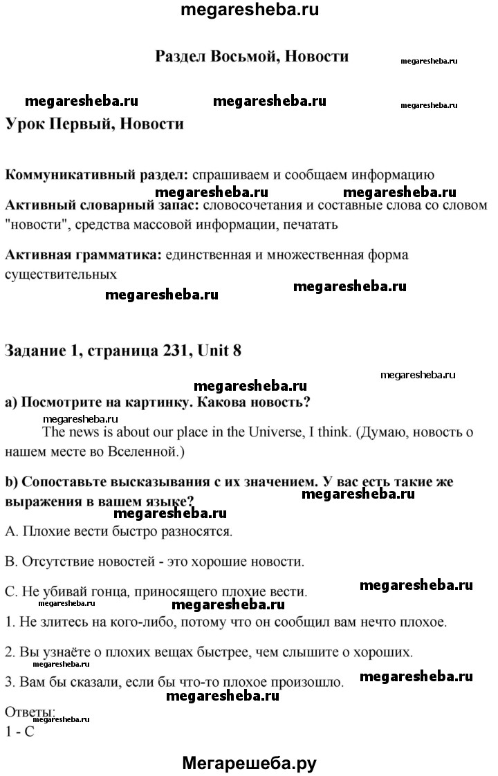 ГДЗ по английскому языку 10 класс Юхнель student's book решение к разделу: страница - 231