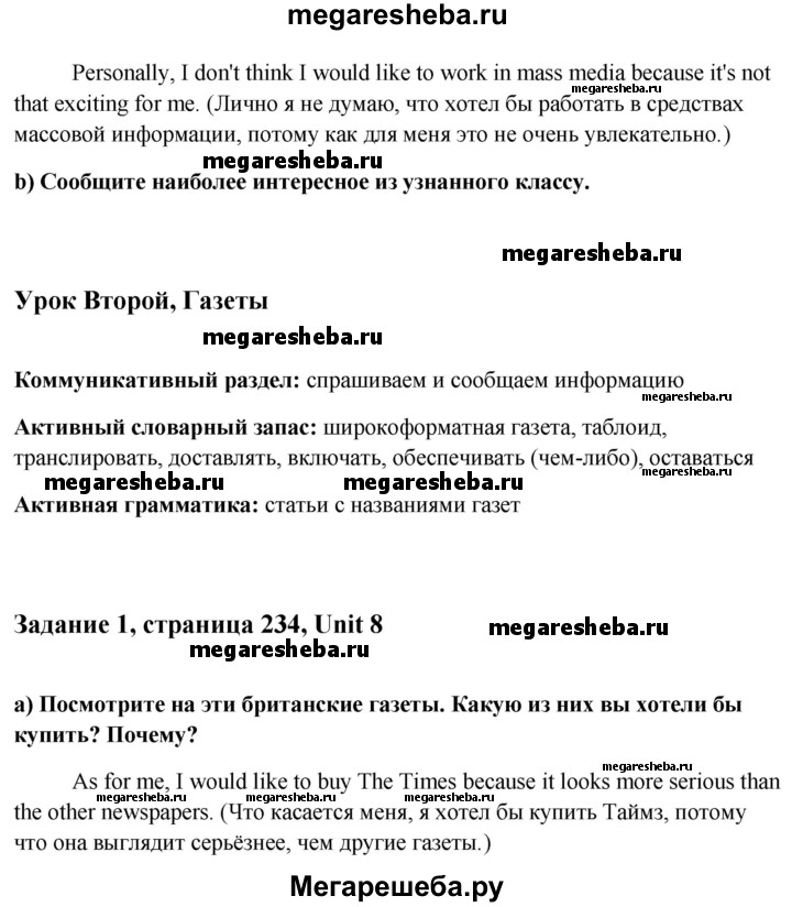 ГДЗ по английскому языку 10 класс Юхнель student's book решение к разделу: страница - 234