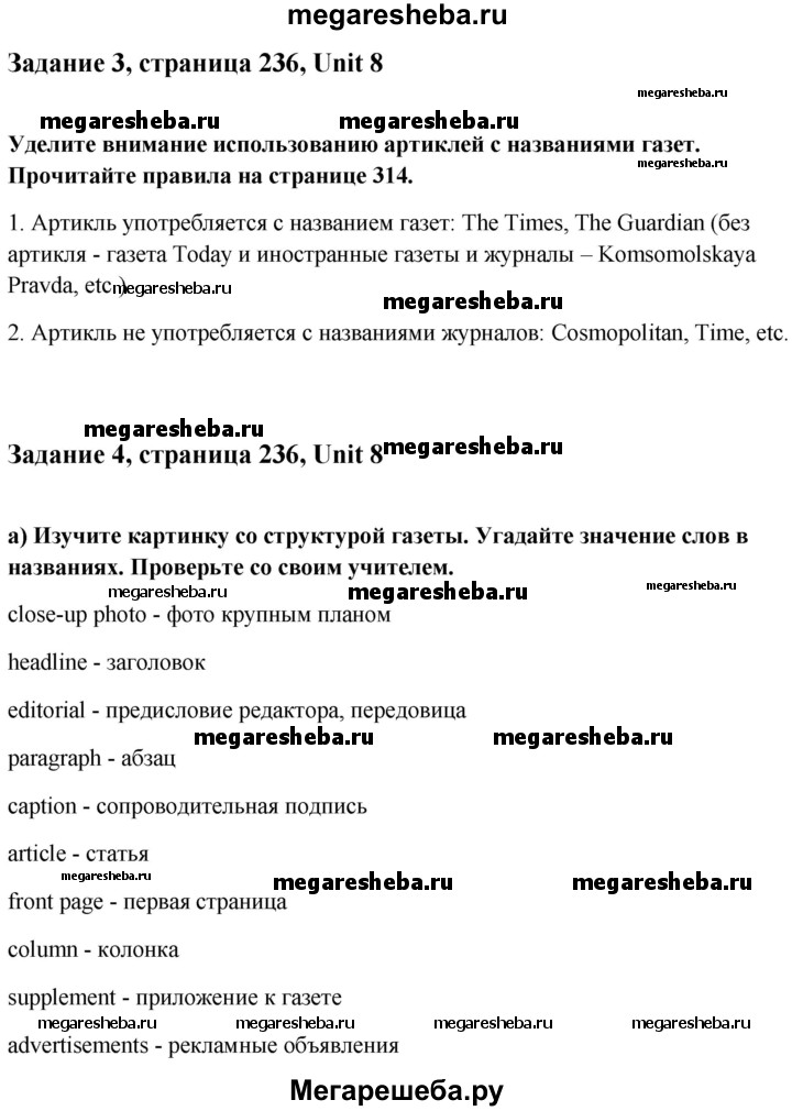 Подробный решебник (ГДЗ) по Английскому языку за 10 (десятый) класс student's book - готовый ответ решение к разделу: страница - 236. Авторы учебника: Юхнель, Наумова, Демченко. Издательство: Высшая школа 2019.