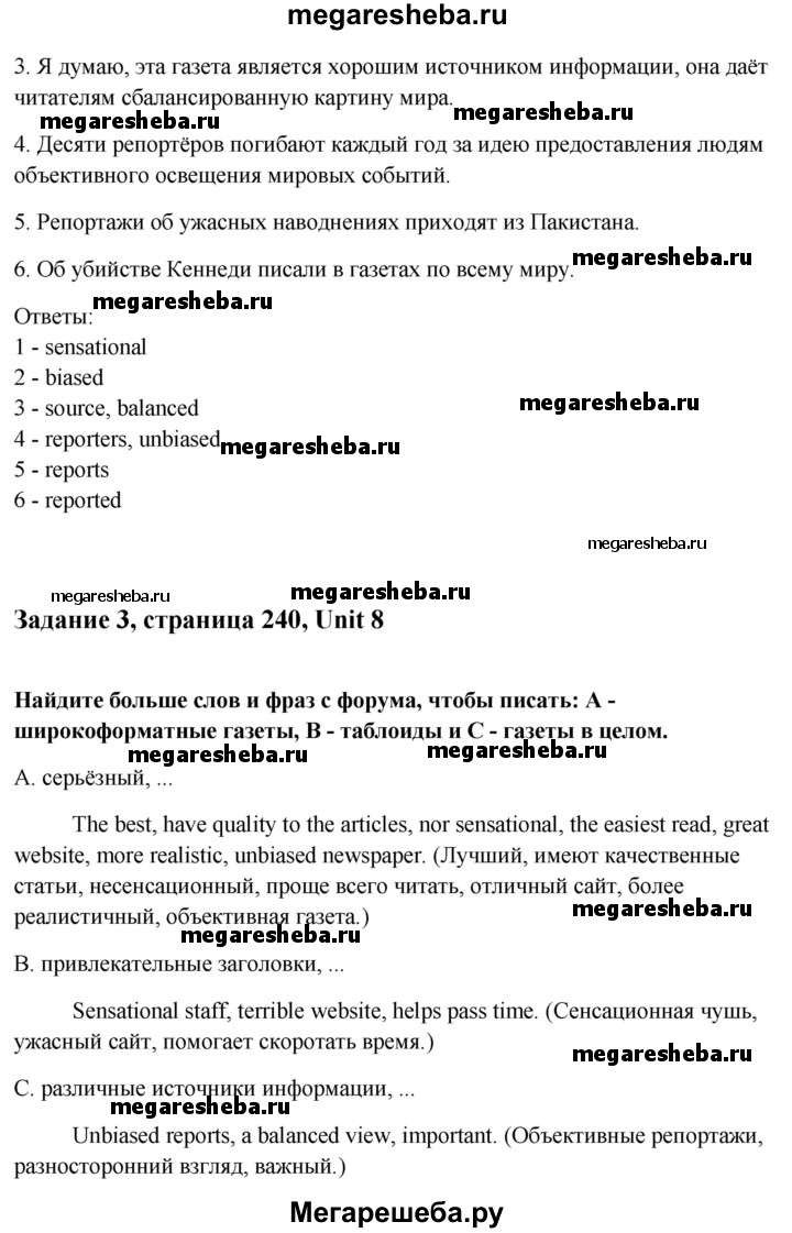 ГДЗ по английскому языку 10 класс Юхнель student's book решение к разделу: страница - 240